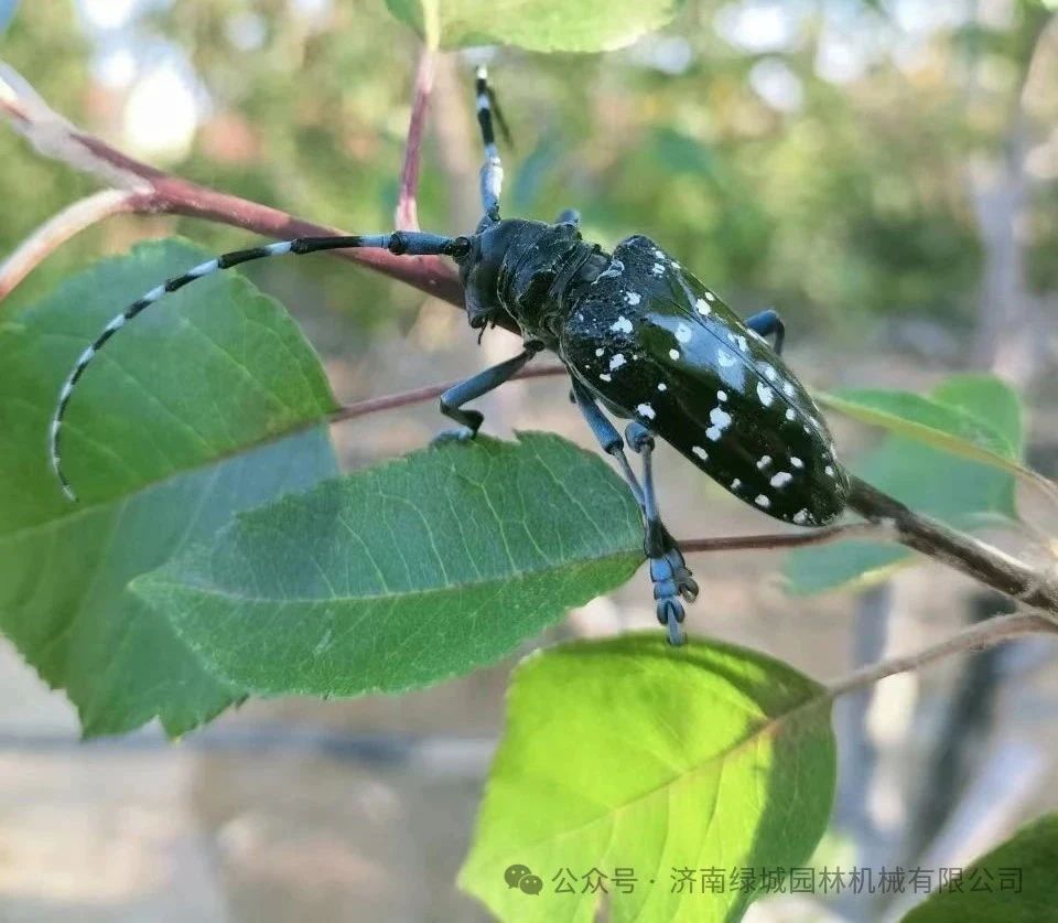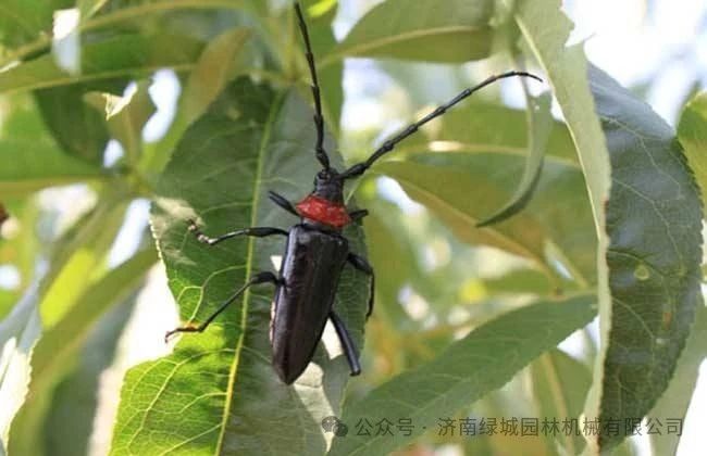 2、成蟲:從危害時間上來看,大部分天牛成蟲在5月下旬至9月份出現(xiàn),以6-7月為主,所以防治成蟲最佳時間節(jié)點在5月中下旬為宜,第一次整體噴施攻牛,在7月上旬第二次噴施攻牛。經(jīng)過兩次防治,成蟲基本可以控制。